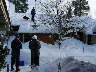 Volt a helyi újságban egy cikk, ami szerint az átlag finn azt hiszi, hogy ha csomót köt a zöldséges zacskóra, akkor az a mérlegen nehezebb lesz, mintha bekötetlen hagyja. Mindenesetre sok idős a csomón próbál filléreket spórolni. Ha tudnák, hogy a lezáratlan zacskóba könnyebb mérlegelés és a cimke felragasztása után még egy-két szem krumplit betenni, mintha le lenne zárva... na de erre egy tisztességes finn (még) nem gondol, ilyet (még) nem feltételez. A tévéengedéllyel sem csal senki, elvileg, csak akkor azt nem értem, miért vannak tévédíj-ellenőrök, akik időnként becsöngetnek és ellenőrzik tényleg nincs-e tévéd. Na de vissza a hótolásra.